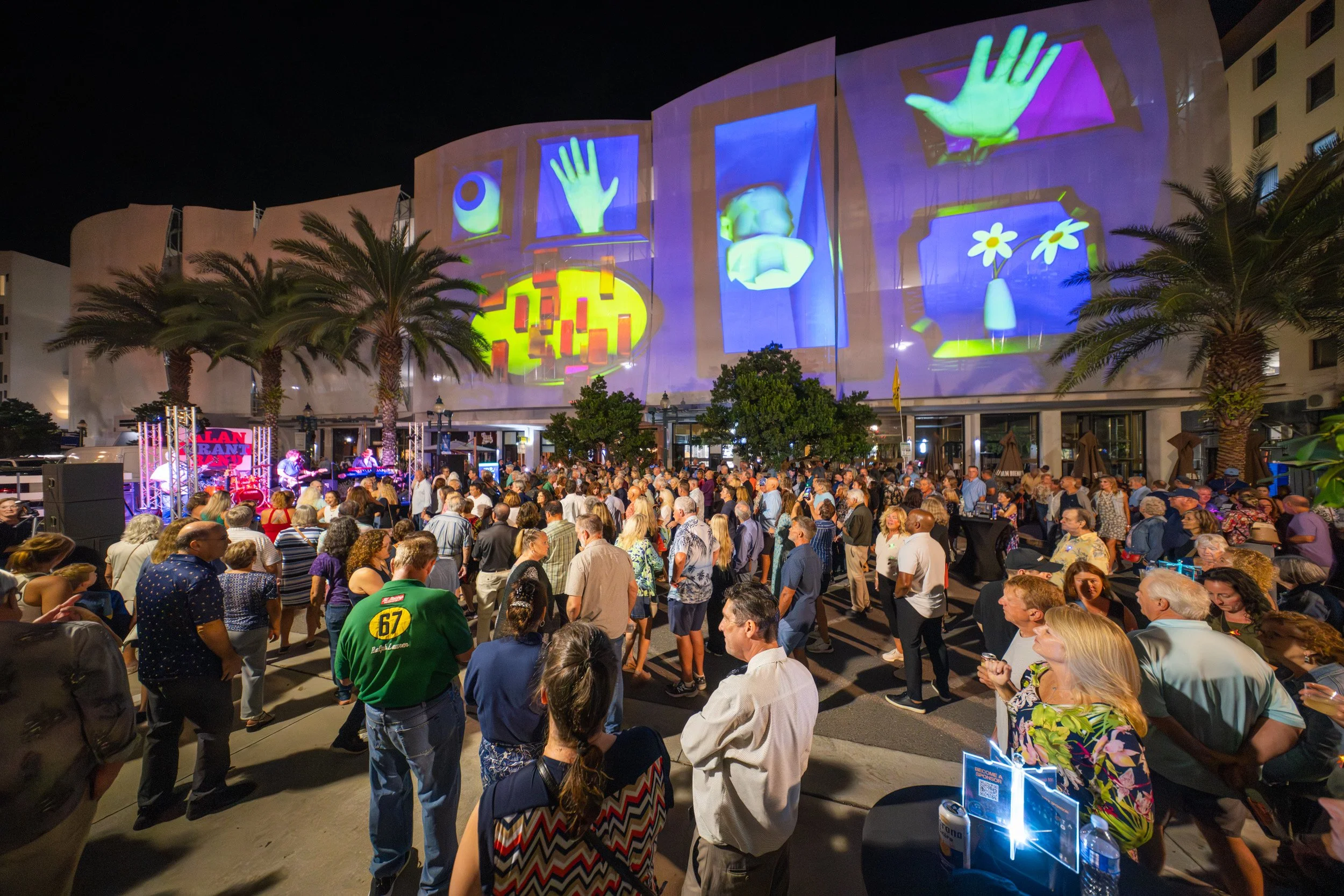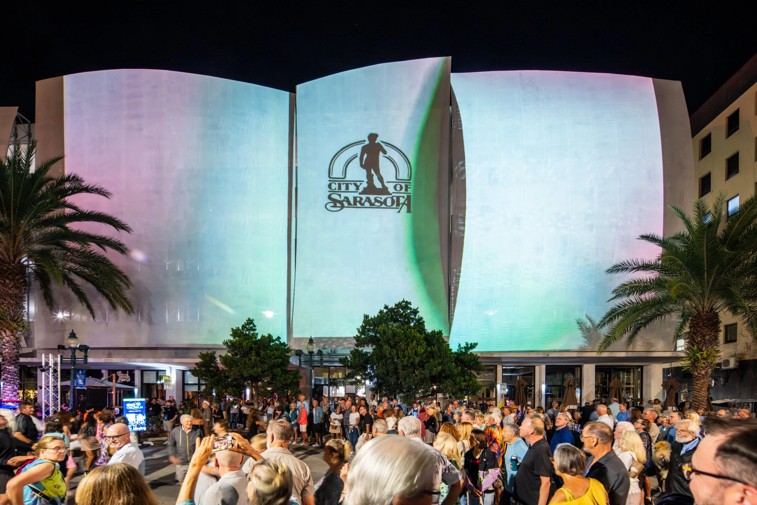 It was a pretty incredible cross over event as the Public Art Committee (chaired by Jonathan Parks) teamed with Ringling College and Fresh Friday to project artwork on the Palm Avenue Parking Garage - designed by SOLSTICE Planning and Architecture!